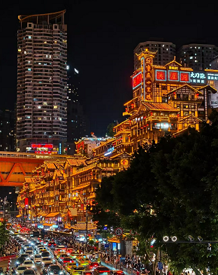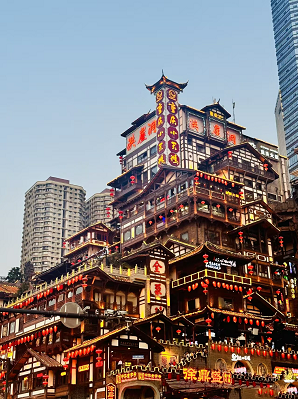 At noon, head to the popular Liziba light rail station that passes through a building, then stroll through the old streets of Ciqikou Ancient Town, experience traditional handicrafts and local delicacies, and feel the unique atmosphere of this mountain town. |